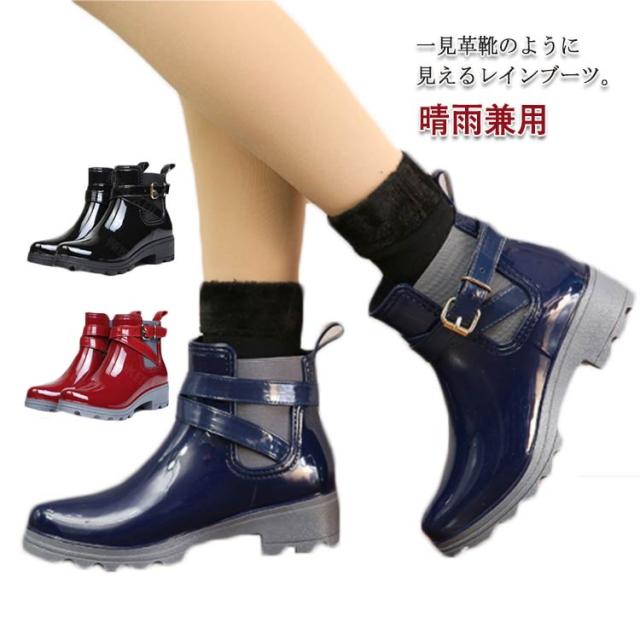 レインブーツ レディース 完全防水 サイドゴア 長靴 レインシューズ ショートブーツ 雨靴 滑りにくい 通勤 エナメル 晴雨兼用 レッド ブラック ブルー