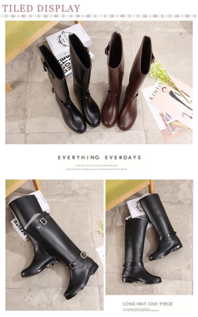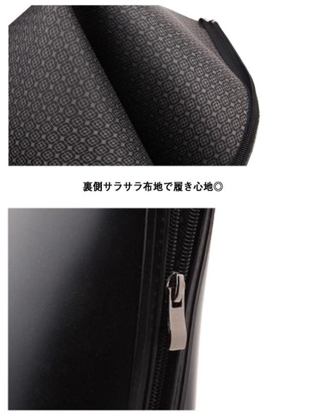| 脱ぎ履き簡単のファスナー付き長靴。 足が細く長く見える美脚を演出するファッション感たっぷりのレインブーツ。 女性らしいスッキリした長めでシンプルなデザイン、ブラックとブラウンの2色展開、幅広い年代にオススメ♪ しっかりとした凸凹加工を施し、雨や雪の悪天候に安定感抜群。 裏側サラサラ布地で履き心地◎ 屈曲性もバツグンの柔らかい素材で歩きやすい。 | |