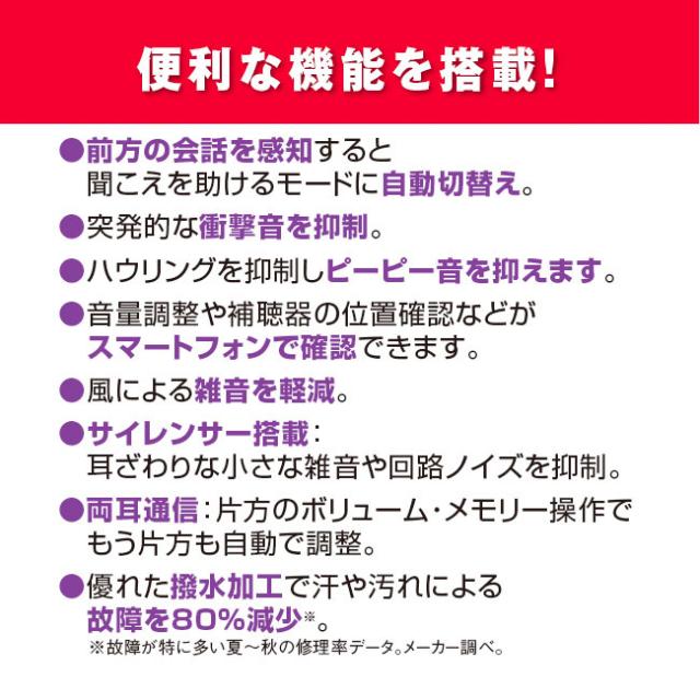 電池交換不要で扱いやすい!音声の方向を捉え※て生き生きとした聞こえ。