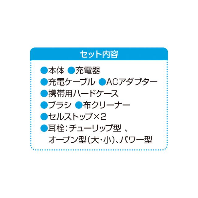 ●サイズ(約)/幅12×奥9×高28mm●重さ(約)/2.5g(1個)●材質/ABS樹脂●電源/リチウムイオン充電池●充電/USB充電器:約3時間充電で約30時間(連続)使用●最大音響利得/HFA45±5dB(ピーク値55dB以下)●90dB最大出力音圧レベル/HFA115±4dB(ピーク値118dB以下)●片耳のセット内容/本体、充電器、充電ケーブル、ACアダプター、布クリーナー、携帯用ハードケース、ブラシ、 セルストップ×2、耳栓:チューリップ型、オープン型(大・小)、パワー型●保証期間/補聴器:2年、充電器:1年●生産国/デンマーク●医療機器認証番号/303ADBZX00068A01※商品のお届けから10日以内は返品が可能です。「ご利用のしおり」記載の電話番号へご連絡の上、指定の方法で返送ください。(送料はお客様負担となります)※装用者の聴こえの状態によっては、効果が異なる場合があります。※ご使用の前に添付文書及び取扱説明書を必ずご参照ください。