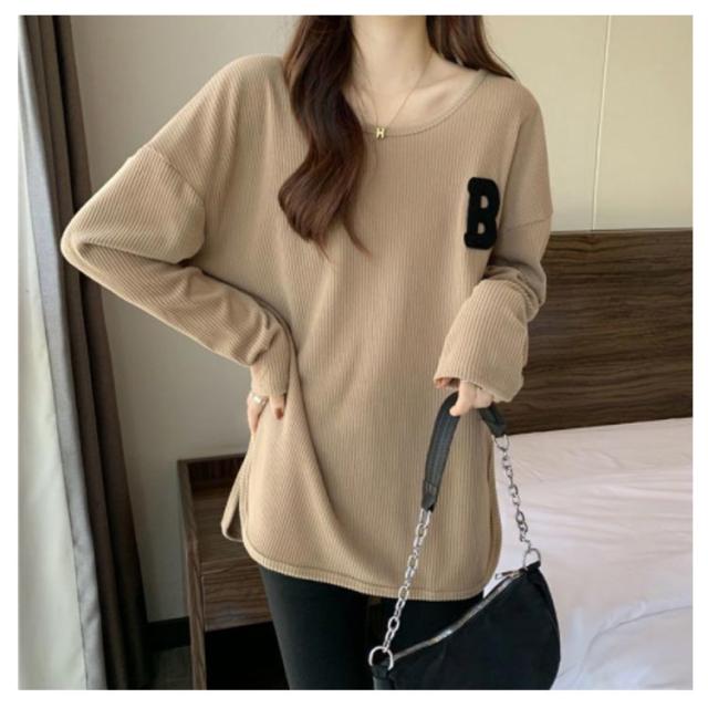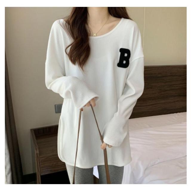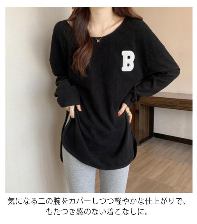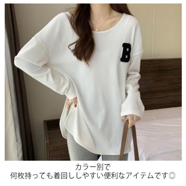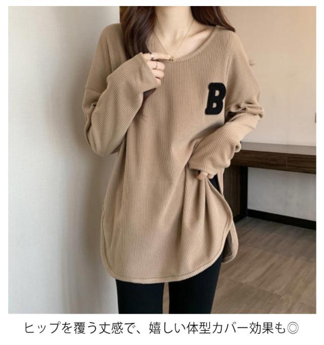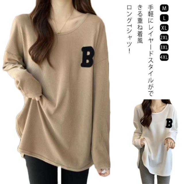 送料無料 ロングTシャツ カットソー トップス Tシャツ ロンT スウェット トレーナー ロングスリーブ ラウンドネック Uネック ロング丈 サイドスリット 無地 ゆったり スラウンド裾 チラ見せ レイヤード 重ね着風 つけ裾 付け裾
