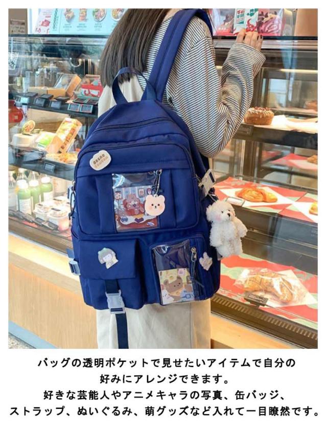痛バッグ リュック クリアバッグ ビニール ポケット デコバッグ 大容量 リュックサック バックパック 軽量 多機能 リュック 缶バッジ ぬいぐるみ 痛バ デコ バッグ 通勤 通学 かわいい 学生かばん 学生鞄 学生バッグ ライブ イベント 普段使い バッジ付き