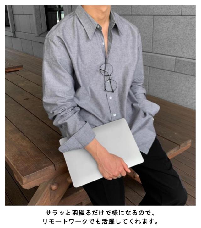 | シンプルなデザインだからこそ、とことんシルエットに拘ったカジュアルシャツ。 身幅を大きく取り、ドロップショルダーを掛け合わせることで、リラックスシルエットに仕上げました。 カラー展開も豊富でラベンダーやグリーン、サックスといった差し色が羽織りとしてはもちろん、カーディガンやジャケットのインナーにも彩りをプラス。 男性はもちろん、メンズライクな女性にもオススメのユニセックスな仕上がりとなりました。 サラッと羽織るだけで様になるので、リモートワークでも活躍してくれます。 | |