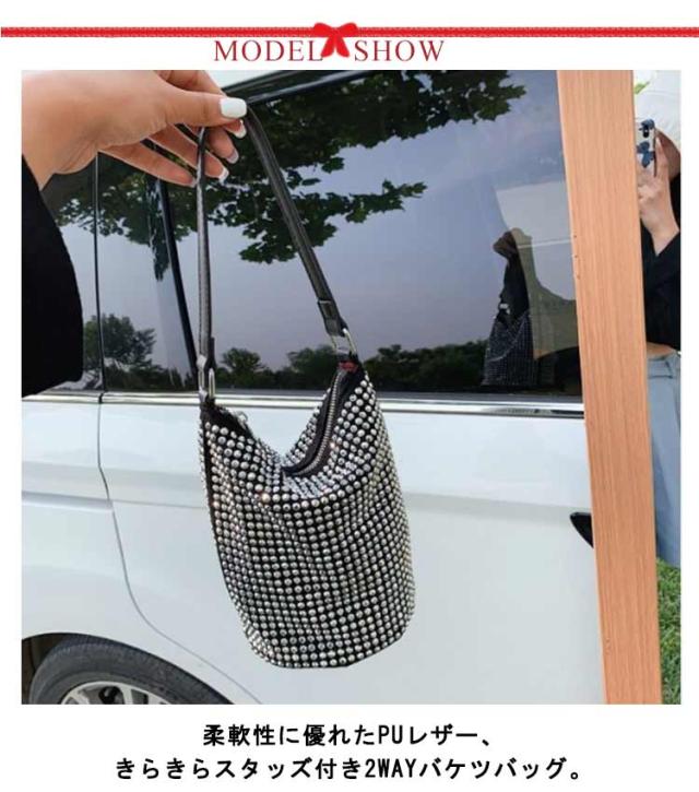 送料無料 キラキラ ビジュー ストーンバッグ バッグ カバン レディース ショルダーバッグ バケツ型 トートバッグ バケツバッグ レザートート フェイクレザー 裏地付き きらきら 通勤バッグ シンプル お洒落 キレイめ