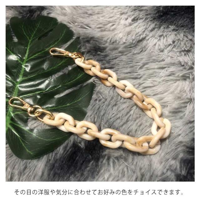 | 鼈甲アクリルチェーンバッグストラップ! 豊かな色を展開! 手持ちのシンプルバッグに付け替えるとあっという間にお洒落に大変身! ハンドバッグや斜め掛けバッグ、肩掛けバッグなどにお使いいただけます。 その日の洋服や気分に合わせてお好みの色をチョイスできます。 | |