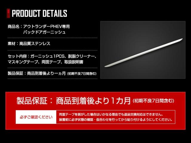 アウトランダー PHEV 専用 バックドアガーニッシュ [1PCS] バック ドア トランク ラゲッジ メッキ 鏡面 OUTLANDER 三菱 ミツビシ リア カスタム