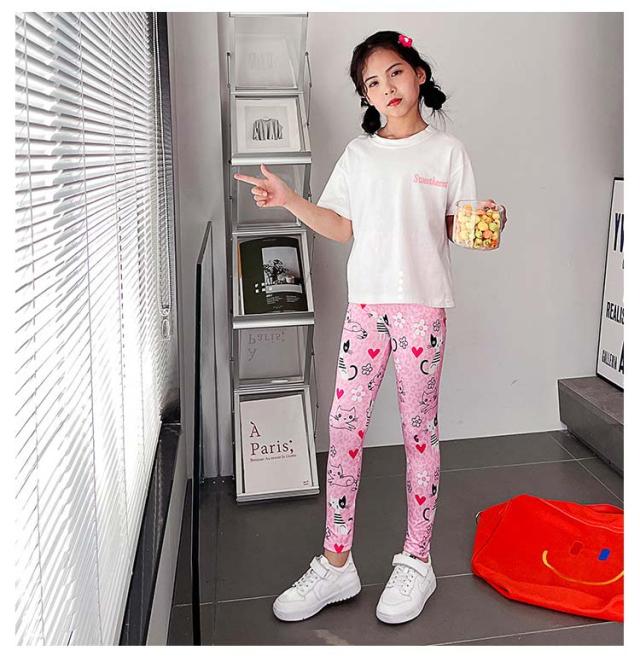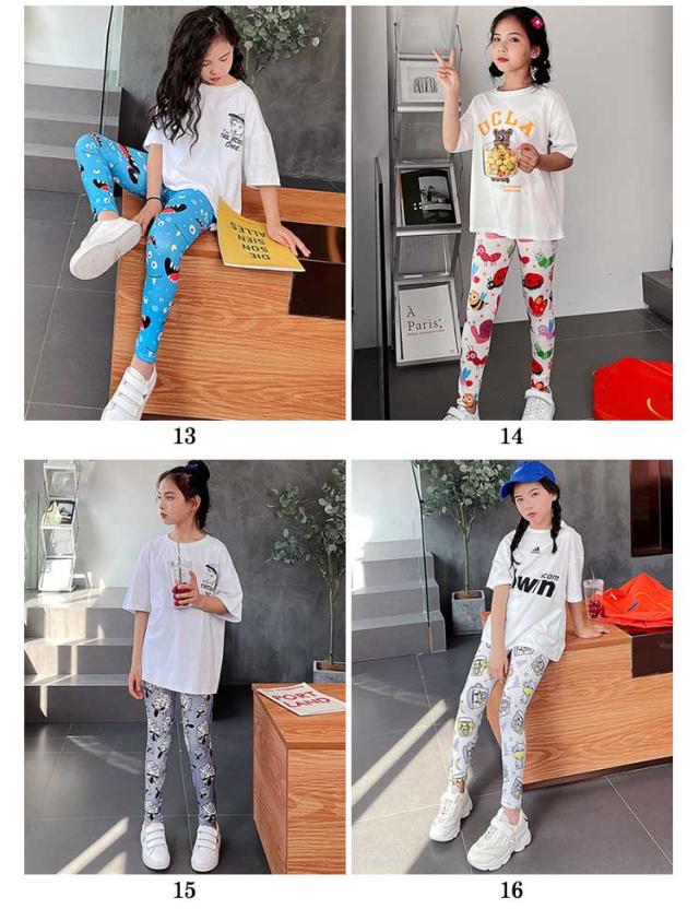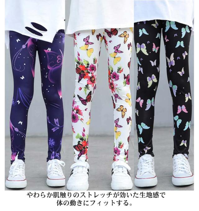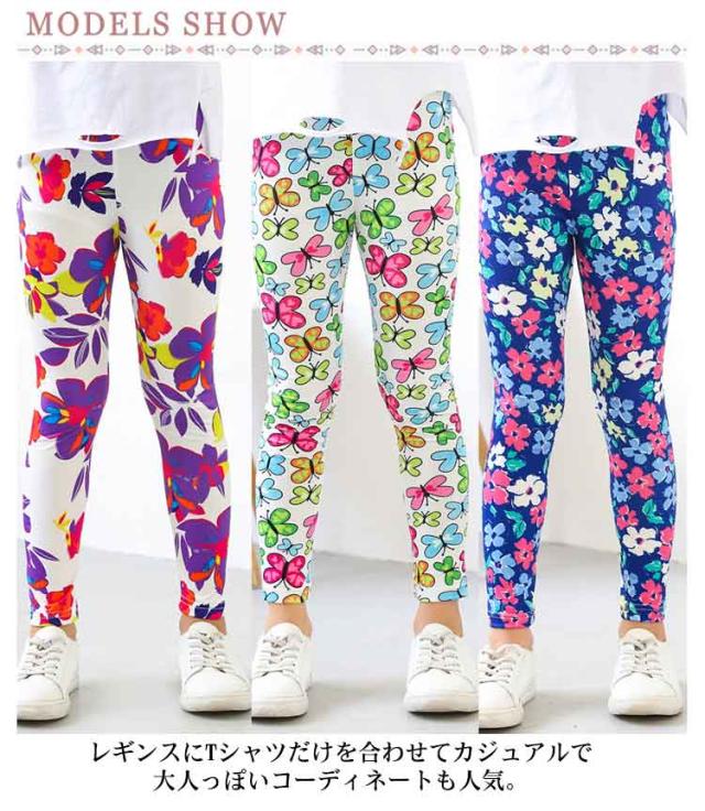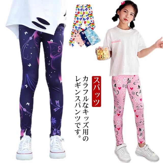 子供服 スパッツ レギンス カラフル 女の子 ボトムス パンツ 総柄 可愛い レギパン ウエストゴム 花柄 フラワー 星柄 スター キッズ おしゃれ 春 夏 秋 冬 10分丈 9分丈 100 110 120 130 140 150 160cm ジュニア 薄手 送料無料