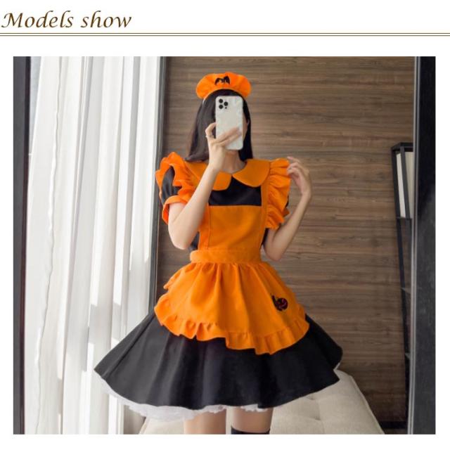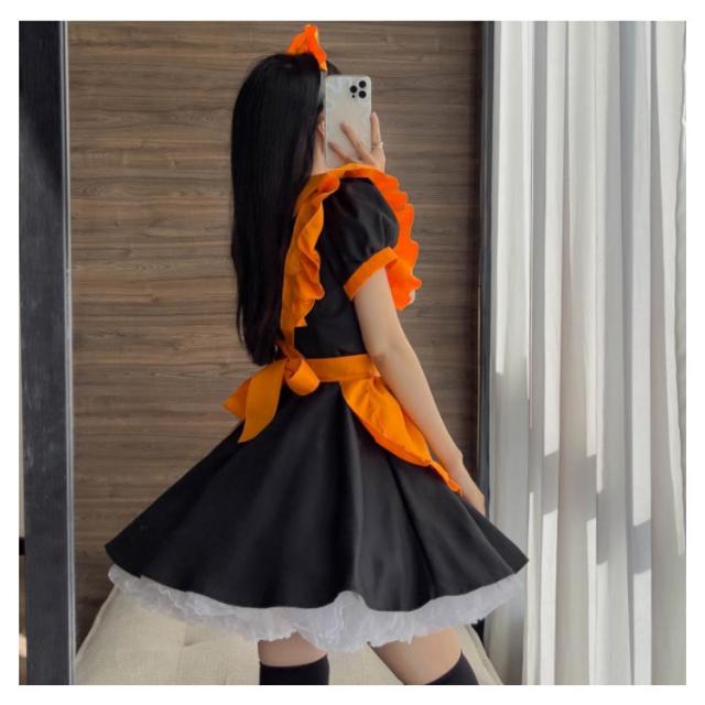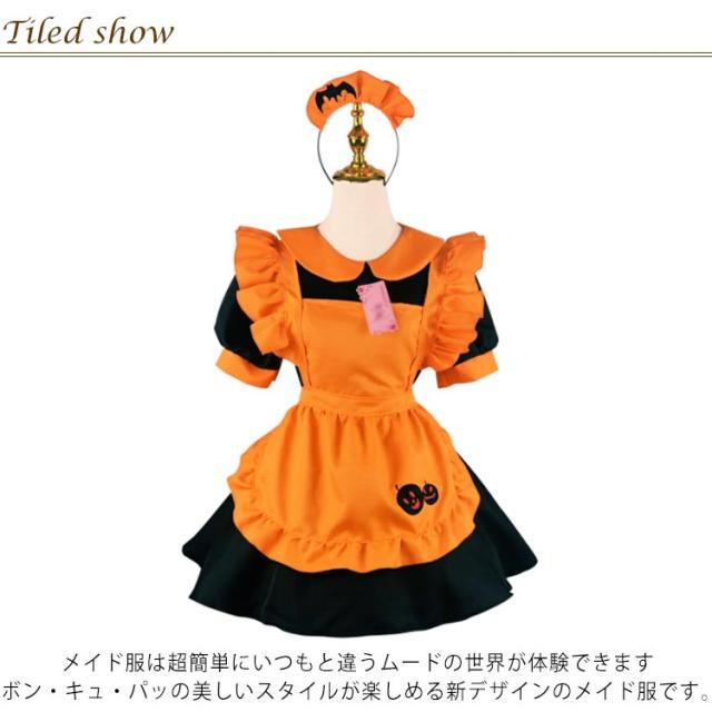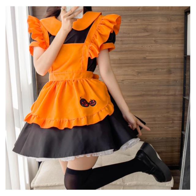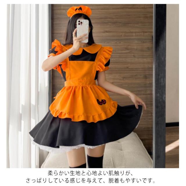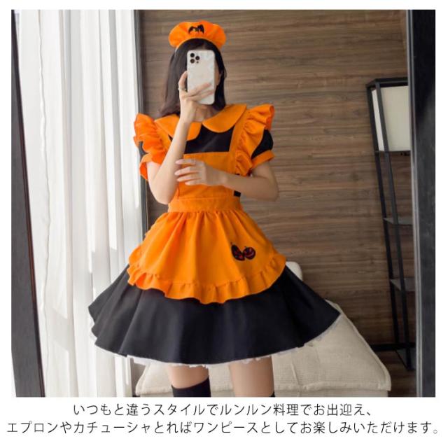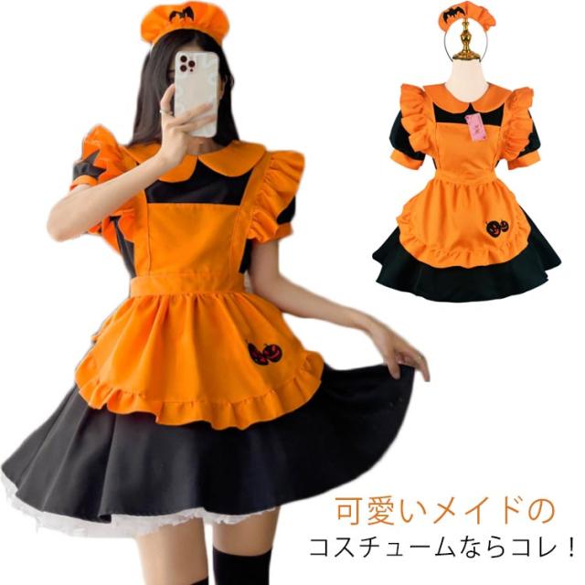 メイド服 半袖 コスチューム ハロウィン コスプレ 仮装 かぼちゃ 可愛い 3点セット カチューシャ ワンピース エプロン セット 大きいサイズ 大人用 かわいい 衣装 ハロウィン仮装 コスプレ仮装 イベント 学園祭 文化祭