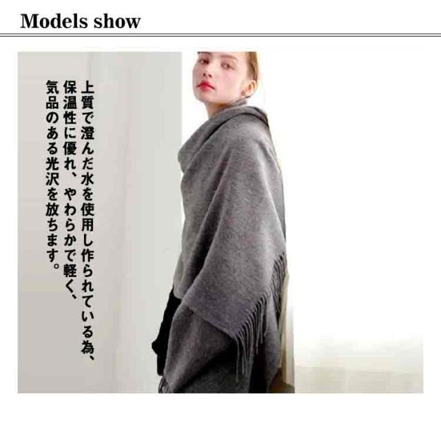 | 「カシミヤマフラー」です。 上質で澄んだ水を使用し作られている為、保温性に優れ、やわらかで軽く、気品のある光沢を放ちます。 デザインはシンプルなものとなっており、カジュアルからフォーマルまで様々なコーディネートと相性抜群です。 生地は薄すぎず中厚ほどで色々な場面で活躍します。 プレゼントにもオススメの逸品です! | |