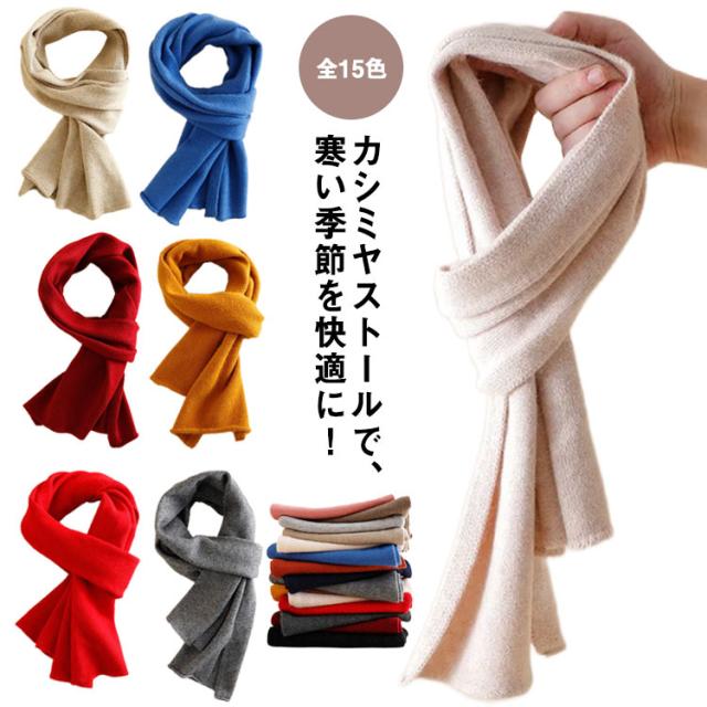 全15色 マフラー ストール カシミヤ ヤギ メンズ レディース ウール ニット ロングマフラー 26*152cm 無地 うすい 薄い 高品質 おしゃれ かわいい 可愛い 肌触りよい あたたか 暖か 温 防寒 毛 プレゼント ギフト