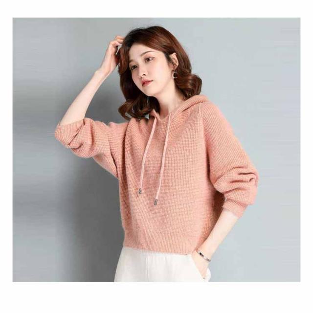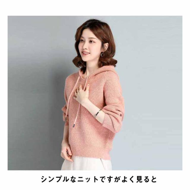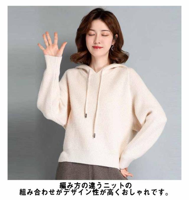 ニットパーカー レディース ワッフルニット リブニット フード付き ドルマンスリーブ ニット パーカー プルオーバー セーター 秋冬 もこもこ ふわふわ かわいい 無地 シンプル 暖かい ゆったり
