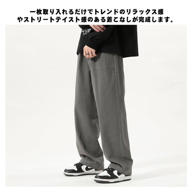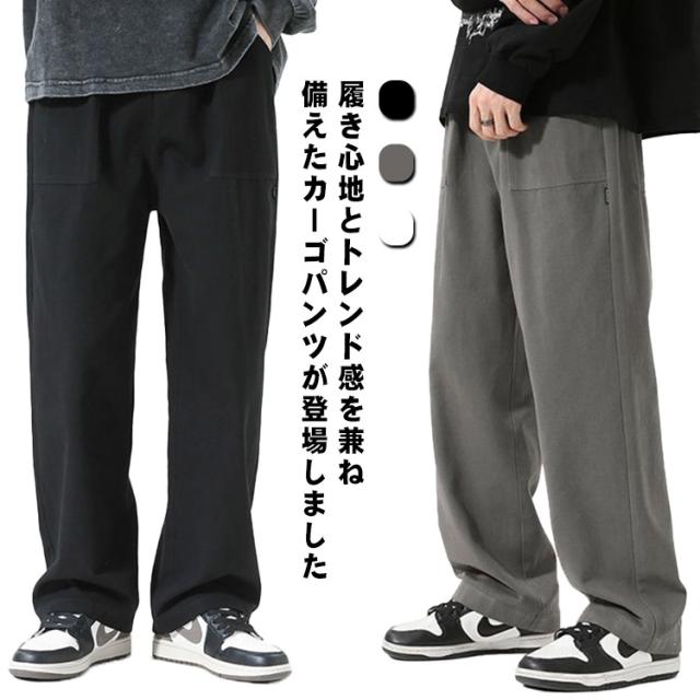 ワイド カーゴパンツ メンズ ボトムス チノパン 長ズボン 太め ゆったり 無地 大きいサイズ おしゃれ 作業着 カジュアルパンツ アメカジ アウトドア パンツ ストレート 韓国 ファッション 秋服 秋 秋冬