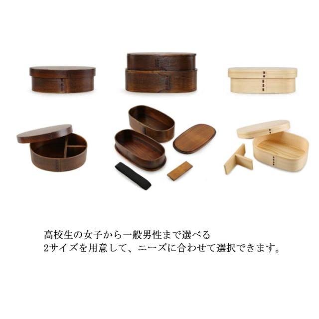 | ナチュラルな曲げわっぱお弁当箱 懐かしく温かい気持ちにあるデザイン、一年中対応できます。 木製だから、炊き立てご飯のふっくらもちもちを保ち美味しいご飯を味わうことが出来ます。冷めたご飯もとっても美味しいですよ♪ 単層は僅か150g、オフィスや学校など普段の持ち歩きにも最適な軽量弁当箱。 高校生の女子から一般男性まで選べる2サイズを用意して、ニーズに合わせて選択できます。 | |