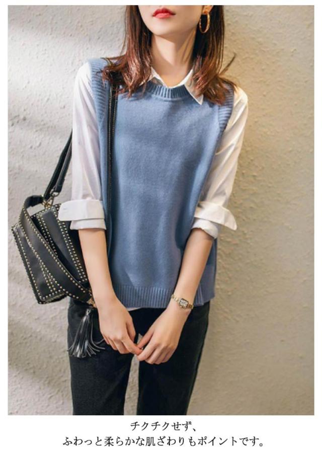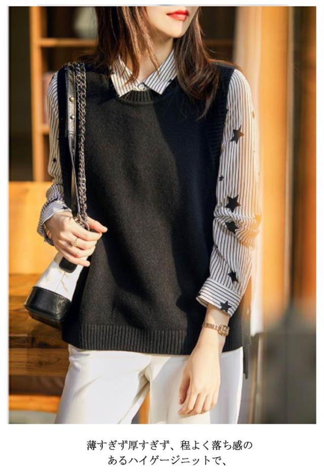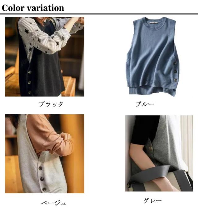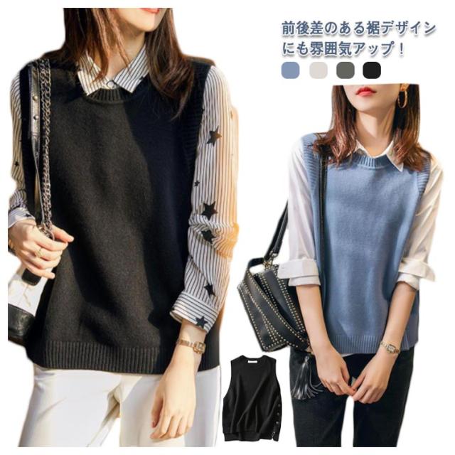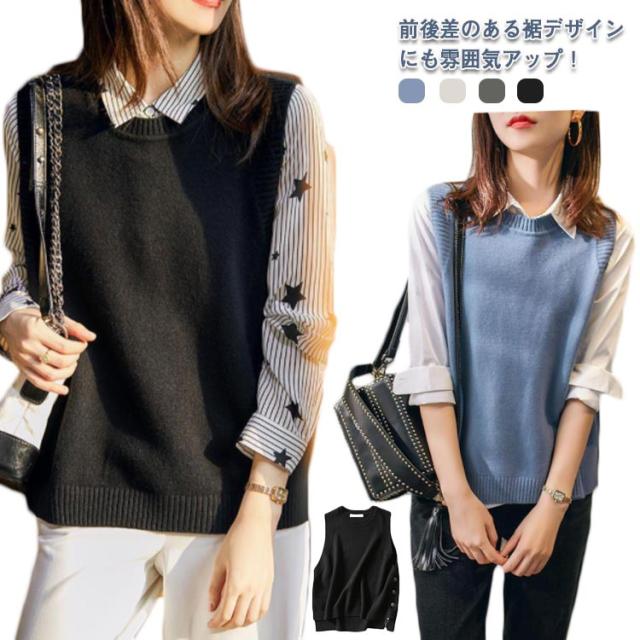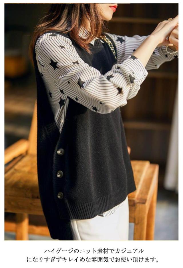 レイヤード風 ニットベスト サイドボタン ニットタンクトップ レディース ニット タンクトップ トップス 重ね着 ベスト ノースリーブニット タンク レイヤード ラウンドネック 無地 シンプル 送料無料