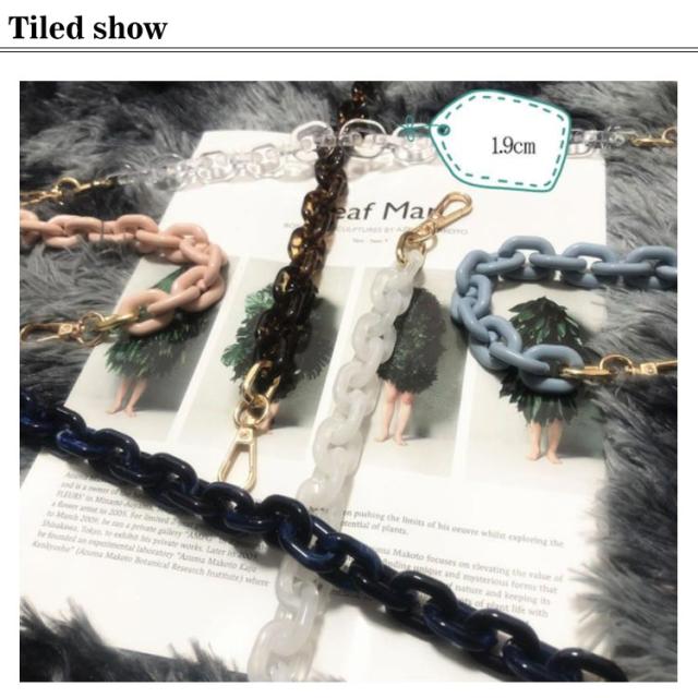 | 鼈甲アクリルチェーンバッグストラップ! 豊かな色を展開! 手持ちのシンプルバッグに付け替えるとあっという間にお洒落に大変身! ハンドバッグや斜め掛けバッグ、肩掛けバッグなどにお使いいただけます。 その日の洋服や気分に合わせてお好みの色をチョイスできます。 | |