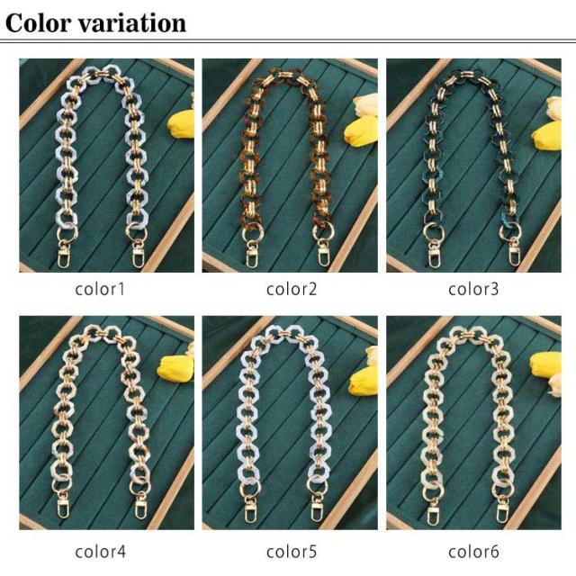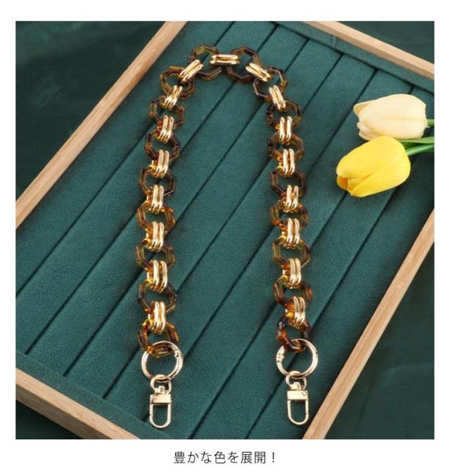 | 鼈甲アクリルチェーンバッグストラップ! 豊かな色を展開! 手持ちのシンプルバッグに付け替えるとあっという間にお洒落に大変身! ハンドバッグや斜め掛けバッグ、肩掛けバッグなどにお使いいただけます。 その日の洋服や気分に合わせてお好みの色をチョイスできます。 | |