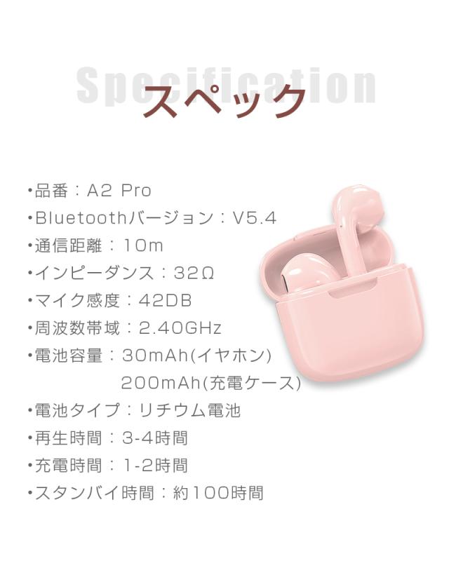 ワイヤレスイヤホン Bluetooth5.4 ワイヤレスヘッドセット bluetooth イヤホン インナーイヤー型 ブルートゥースイヤホン 自動ペアリング 【PL保険加入済み製品・安心】
