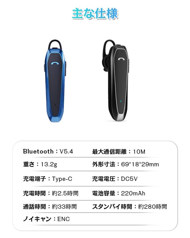 ワイヤレスイヤホン Bluetooth5.4 マイク内蔵 クリア通話 片耳タイプ 両耳兼用 高音質 2台同時接続 自動ペアリング ノイズキャンセリング 【PL保険加入済み製品・安心】