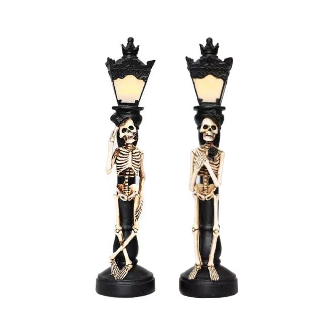 お洒落 紳士 淑女 骸骨 スケルトン 2点セット 街灯 点灯 ボタン電池×3 ハロウィン スカル がいこつ ガイコツ おしゃれ 紳士 骨 格好良い ハロウィン用品 キャンドルライト風 アンティーク ヴィンテージ ゴシック ランプ インテリアライト