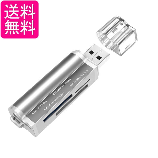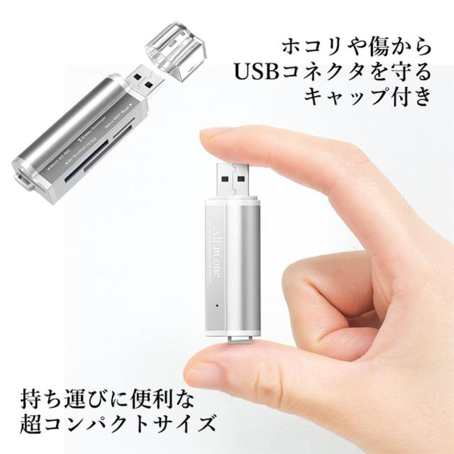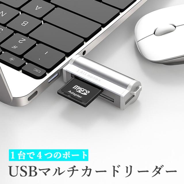SDカードリーダー USB メモリーカードリーダー シルバー 4ポート MicroSD マルチカードリーダー コンパクト 軽量 (管理S) 送料無料