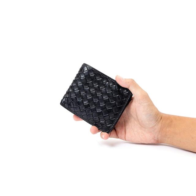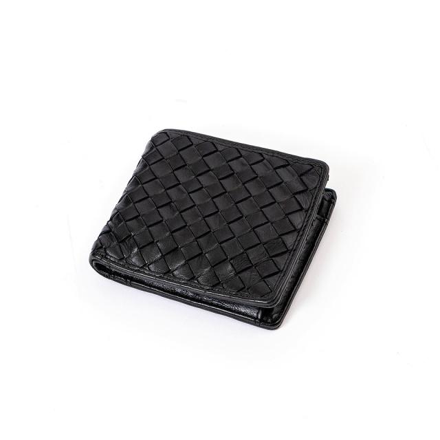 製品洗い加工を施したヴィンテージ感のある表情が魅力的な「DOUBLES」のお財布シリーズ。編み込まれた1cm幅程度の牛革メッシュが他にない個性を生み出しています。