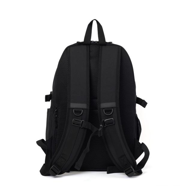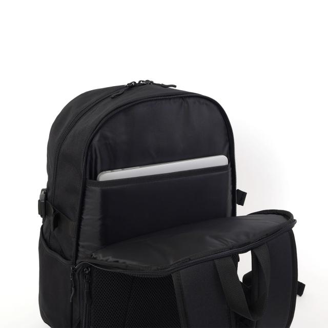 メインルームにはパソコンを入れるクッションポケットがあります。前面ポケットはメッシュになっているため、中のアイテムを見せるおしゃれも楽しめます。背面には背負ったままアクセスできる小物ポケットがあり、スマホや財布などを入れておくのに便利です。