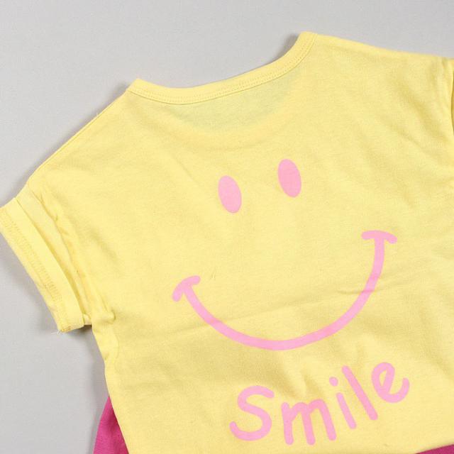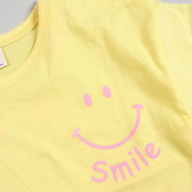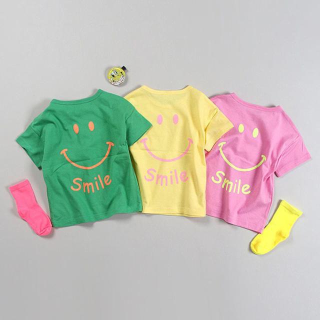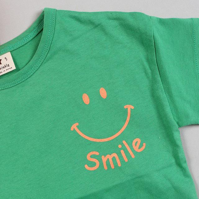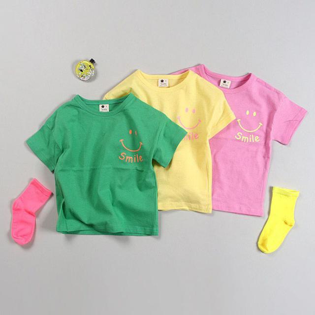 韓国子供服 半袖Tシャツ SMILE スマイル ニコチャン カラフル Tシャツ グリーン イエロー ピンク 90 100 110 120 130 140 プリントTシャツ 子供用 女の子 男の子 ベビー お洒落 カワイイ オシャレキッズ【メール便送料無料】