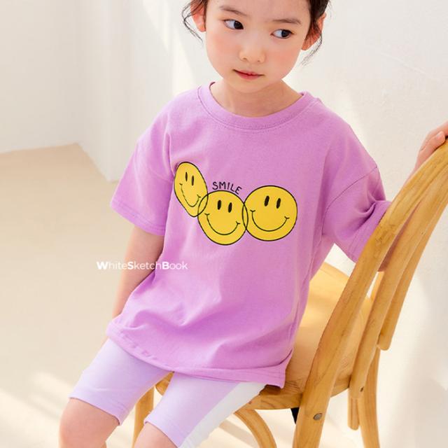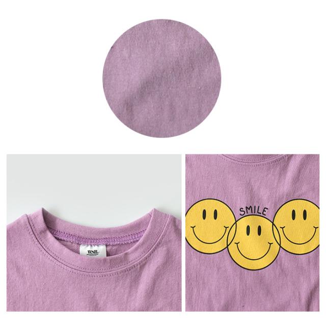 韓国子供服 半袖Tシャツ SMILE スマイル カラフルT スマイル3 ニコチャン ホワイト パープル ブルー 90 100 110 120 130 140 150 プリントT 子供用 女の子 男の子 ベビー お洒落 カワイイ【追跡可能メール便無料】