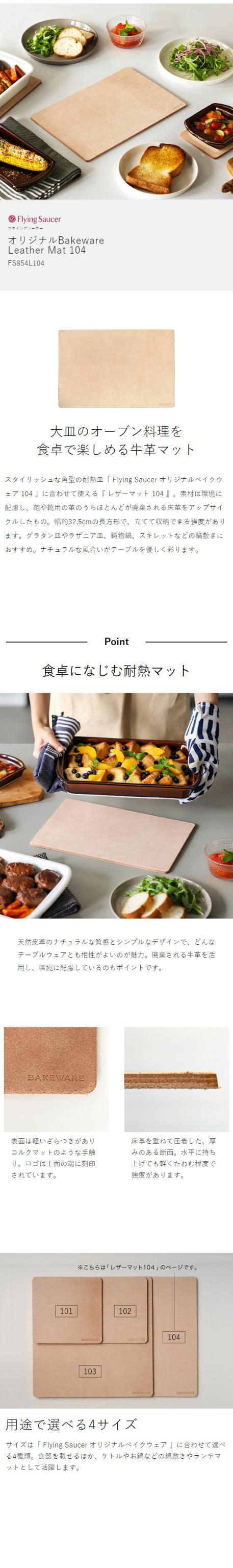 [ Flying Saucer オリジナル ベイクウェア レザーマット 104 ]フライングソーサー Bakeware 鍋敷き なべ敷き マット 耐熱 LeatherMat 牛革 日本製 床革 角型 テーブルウェア オーブンウェア 耐熱マット 鍋しき おしゃれ 北欧 キッチン【送料無料】