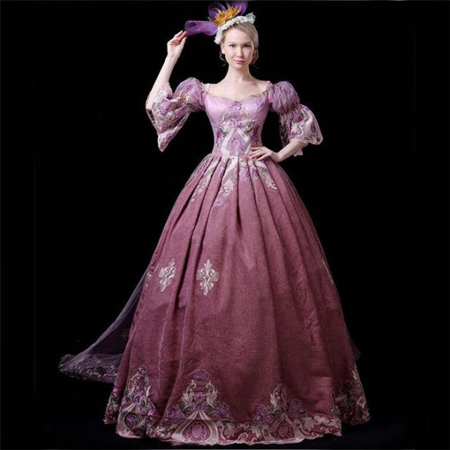 ロングドレス ヴェルサイユ 風 しりもちドレス ヨーロッパ宮廷風 お姫様ドレス 公爵夫人 宮廷服 あずき 演劇服装 ステージ衣装 オペラ声楽 撮影 ハロウィン 着丈&サイズ指定可 d9183c0c0c6