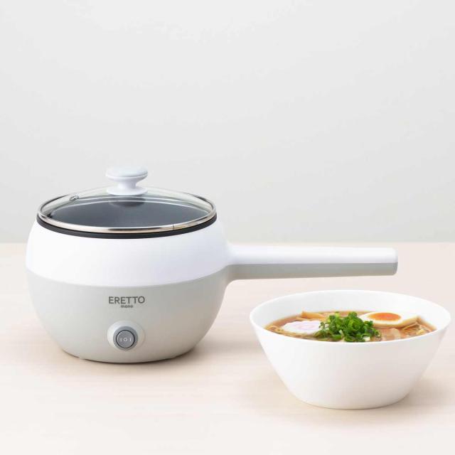 電気片手鍋 16cm ERETTO mono 電気片手鍋16cm ( 電気鍋 でんき鍋 片手鍋 ひとり鍋 一人鍋 1人用 2人用 ゆでたまごラック付き 16センチ 片手なべ ゆでたまご ゆで卵 調理家電 卓上調理器 フッ素樹脂加工 ガラス蓋付き )