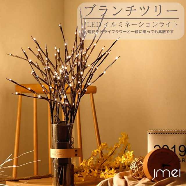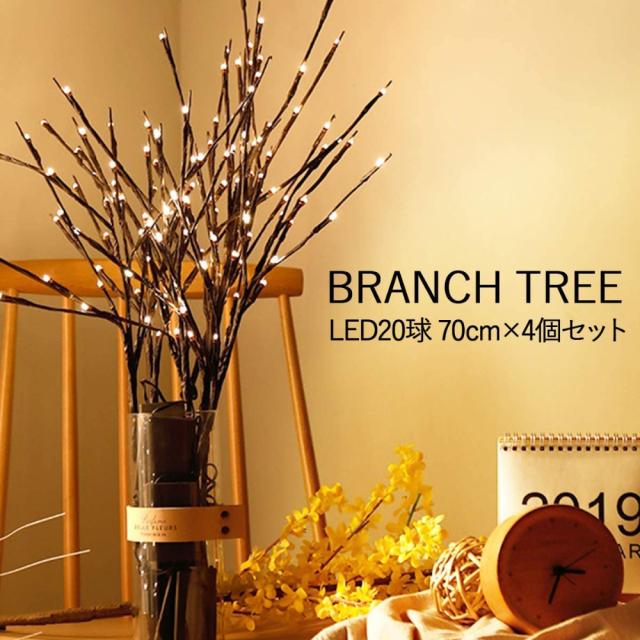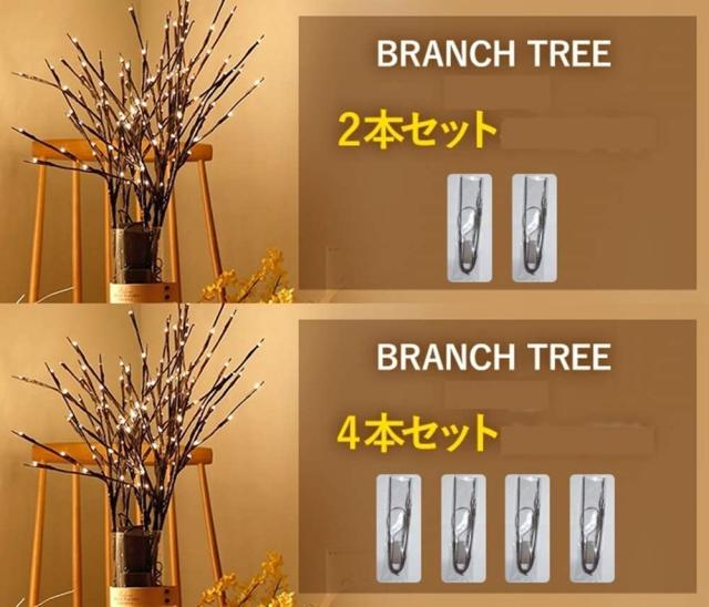 【店舗やご家庭のインテリアにも】1つの枝にLEDライトが20球付いています。長さ約70cmです。2本セット 4本セットからお選びいただけます。枝のライトが幻想的に光るのでインスタなどのSNS撮影にも映えます。パーティやイベント インテリアのアクセントなど様々にお使いいただけます。