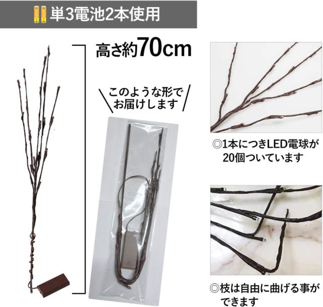 ◆1つの枝にLEDライトが20球付いています。長さ約70cmです。