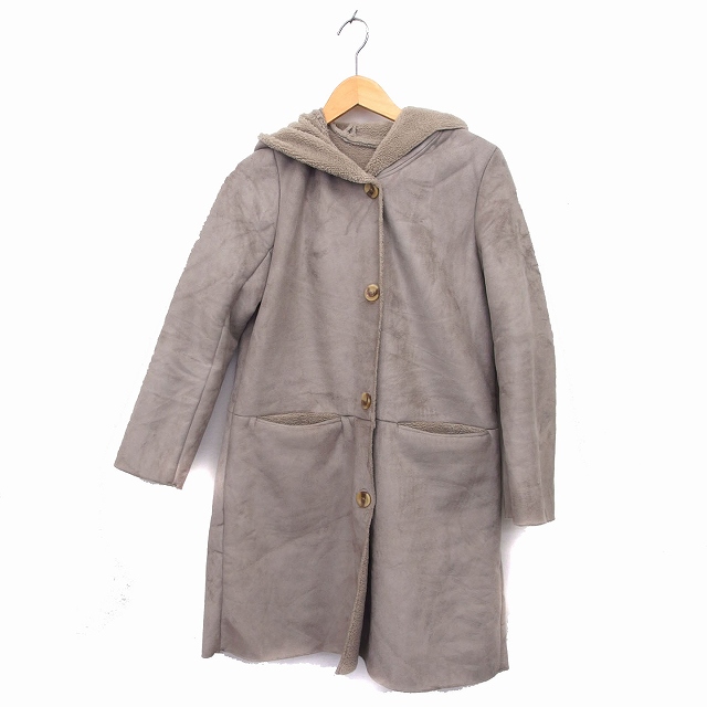 【中古】シンプリシテェ Simplicite フェイクムートン コート アウター ミドル ボア フェイクレザー 無地 グレージュ