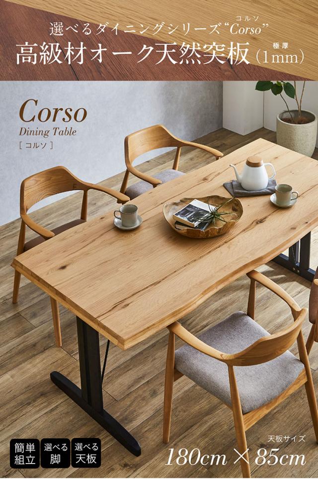 【高級材オーク突板使用/選べる脚+天板】ダイニングテーブル 幅180cm Corso(コルソ) 全4タイプ ダイニング テーブル 木製 おしゃれ 4人掛け 6人掛け 食卓テーブル 一枚板風 ミーティングテーブル ナチュラル