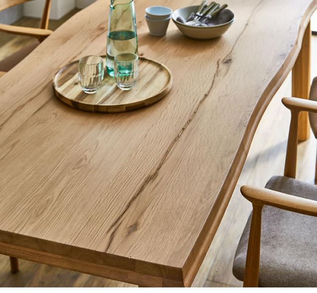 オーク突板、ラバーウッド無垢材