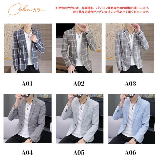 テーラードジャケット メンズ ブレザー ビジネススーツ チェック柄 ジャケット アウター カジュアル 着痩せ 通勤 スリム 春秋