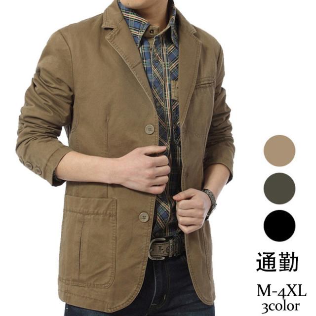 テーラードジャケット メンズ 長袖 ジャケット 綿 ブレザー アウター ビジネス カジュアル スーツ タイト 大きいサイズ 着痩せ