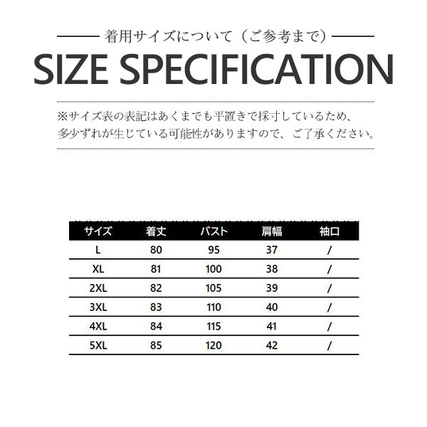 サイズ:/L/XL/2XL/3XL/4XL/5XL