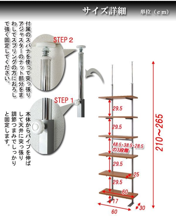 ■商品サイズ/本体:(約)幅60×奥行30(脚部18)×高さ210〜265cm
