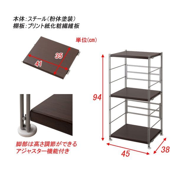 ラック 棚 スチール 可動 日本製 収納 3段 幅45 テレビ台 リビング 丈夫 棚板 スリム 本棚 木目調 洋服 観葉植物 ディスプレイ オープンラック おしゃれ