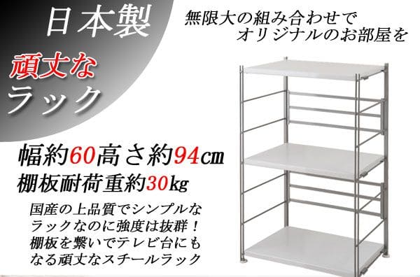 ラック 棚 スチール 可動 日本製 収納 3段 幅60 テレビ台 リビング 丈夫 棚板 スリム 本棚 木目調 洋服 観葉植物 ディスプレイ オープンラック おしゃれ