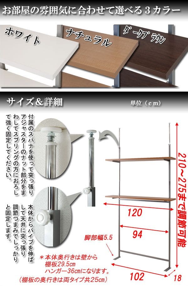 ■商品サイズ/本体:(約)幅120×奥行29×高さ210〜275cm