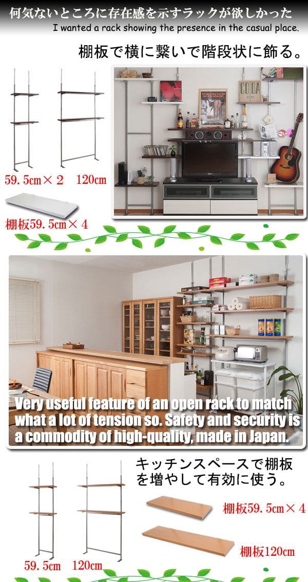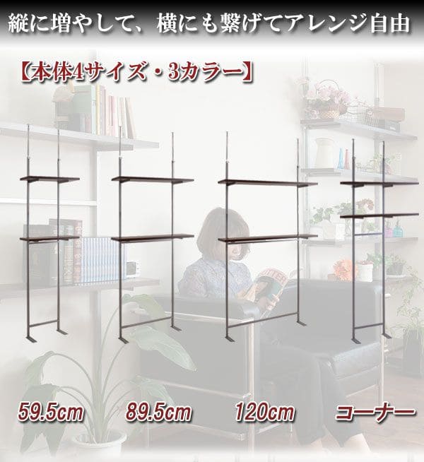 壁面収納 つっぱり収納 木製 アイアン リビング 玄関 間仕切り 突っ張り棒 コンパクト 縦長 軽量 ハイタイプ 観葉植物 賃貸 木
