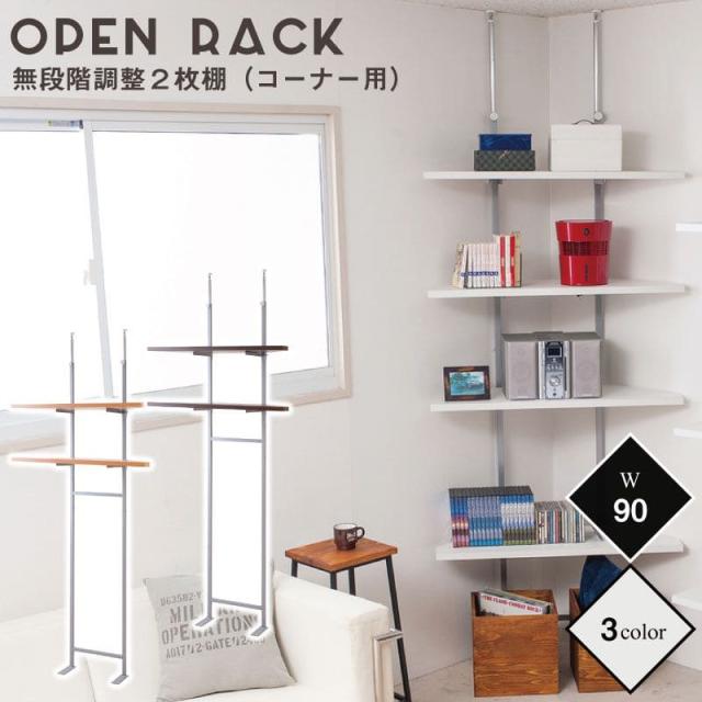 突っ張りラック 棚 2段 幅90 コーナー スリム ラック つっぱり 突っ張り棚 diy 角 収納 棚板 スチール 奥行30 薄型 壁面 ラダーラック おしゃれ 突っ張り式
