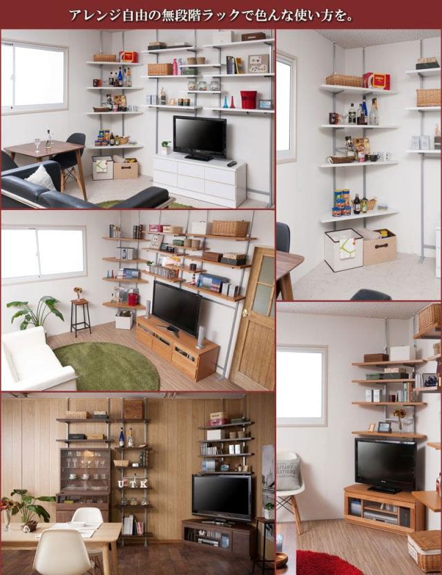 壁面収納 つっぱり収納 木製 アイアン リビング 玄関 間仕切り 突っ張り棒 コンパクト 縦長 軽量 ハイタイプ 観葉植物 賃貸 木