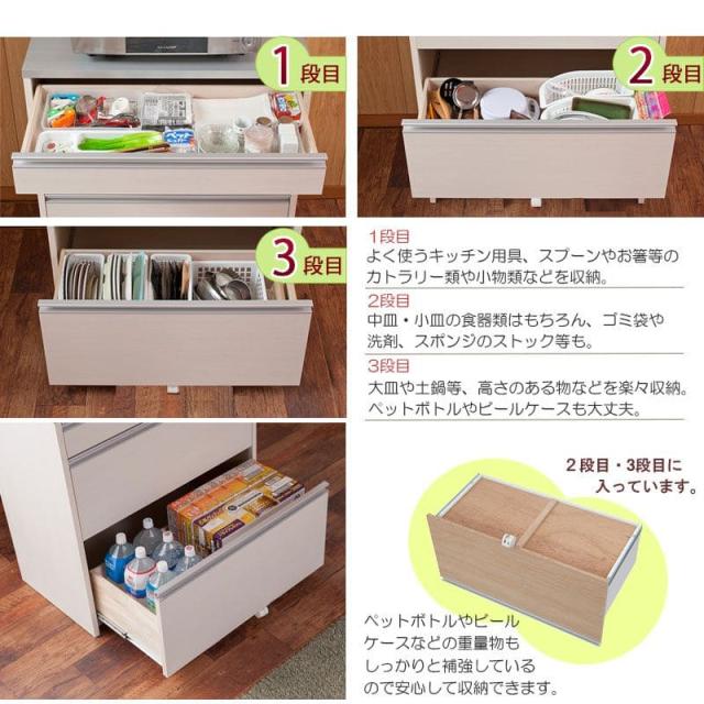 完成 目隠し 背面 ウッド ロータイプ 引出し キャスター付き レンジボード 隠せる 使いやすい 見えない収納 キッチン収納