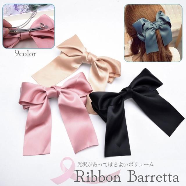 バレッタ レディース 女性 ヘアアクセサリー 髪飾り 髪留め まとめ髪 リボン 大きめ 単色 可愛い おしゃれ カラバリ豊富
