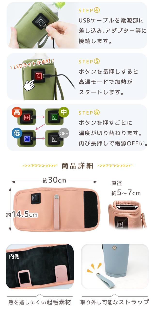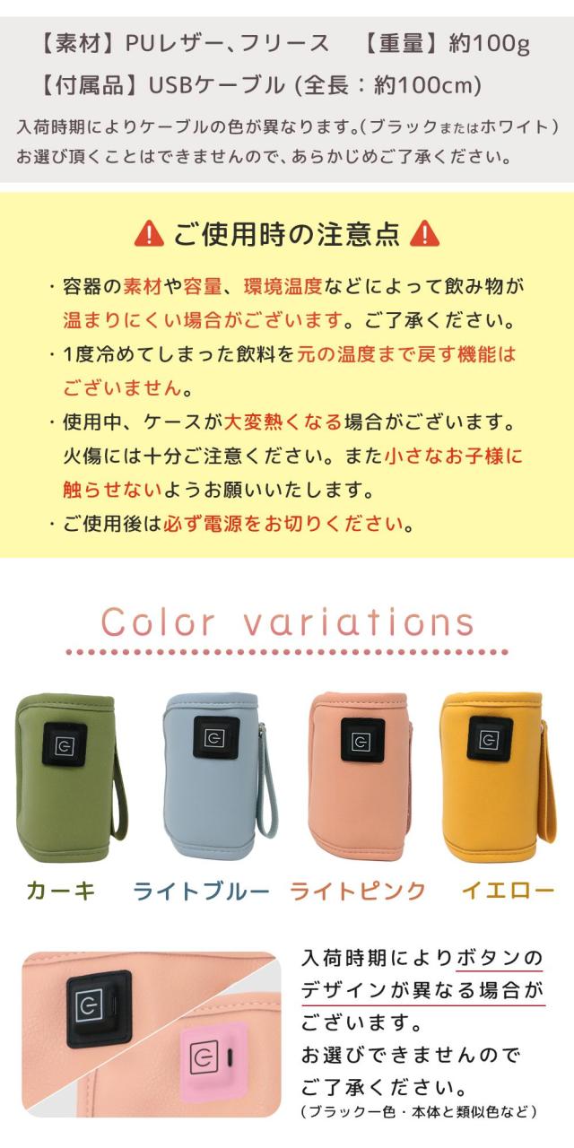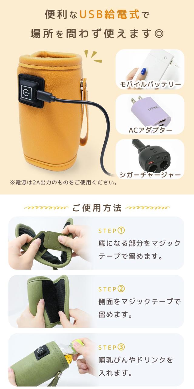 哺乳瓶ウォーマー/ボトルウォーマー/ミルクウォーマー/温め/保温/哺乳瓶ポーチ/哺乳瓶ホルダー/温度調節/保温器/温乳器/哺乳びん/携帯/持ち運び/外出/USB/給電/ペットボトル/缶/ホット飲料/秋/冬/粉ミルク/液体ミルク/コンパクト/ベビー用品/授乳用品/便利アイテム/便利グッズ/出産祝い/ギフト/プレゼント/カーキ/グリーン/ブルー/ピンク/イエロー/出産準備/哺乳瓶温め/持ち運べる/ほ乳瓶/ヒーター/哺乳瓶ケース/哺乳瓶カバー/夜中/ミルク保温/車内/ドリンクウォーマー/カバー温め/旅行/哺乳瓶を温める/液体ミルクを温める/粉ミルクを温める/ミルクを温められるグッズ/赤ちゃんのミルクを温める/哺乳瓶を温めるグッズ/ミルクウォーマーとは/哺乳瓶ウォーマーとは/哺乳瓶グッズ/