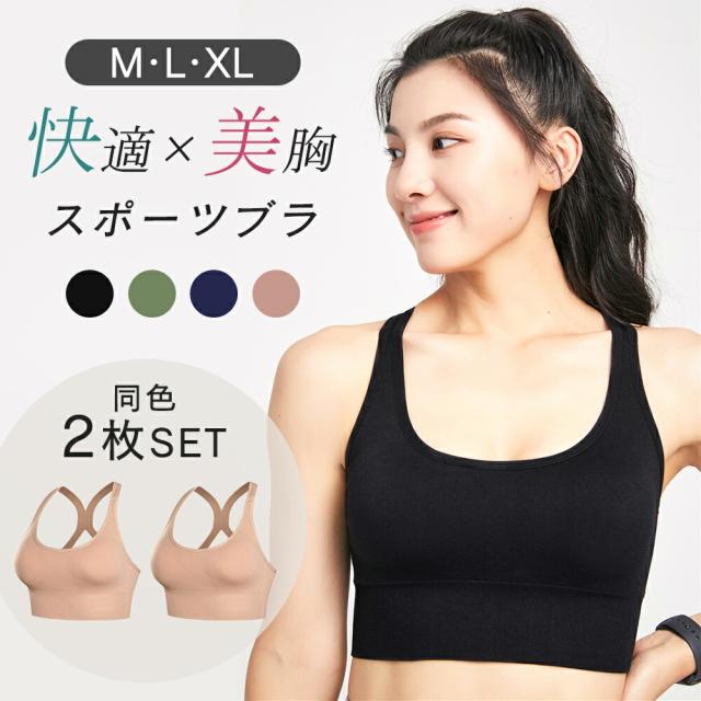 スポーツブラ/2枚/フィットネスブラ/ノンワイヤー/ブラジャー/タンクトップ/ブラトップ/揺れない/ヨガ/ヨガウェア/伸縮/フィット/4段/ホック/調整/可能/クロスデザイン/ランニング/ジョギング/ジム/ヨガ/フィットネス/ピラティス/ダンス/高校生/中学生/ジュニア/レディース/女性/大きいサイズ/M/L/XL/ブラック/グリーン/ネイビー/ピンク